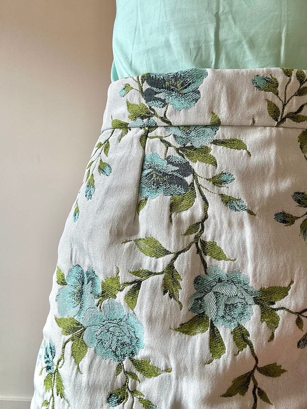 - Floral brocade mini skirt (orange & green on silver-grey)